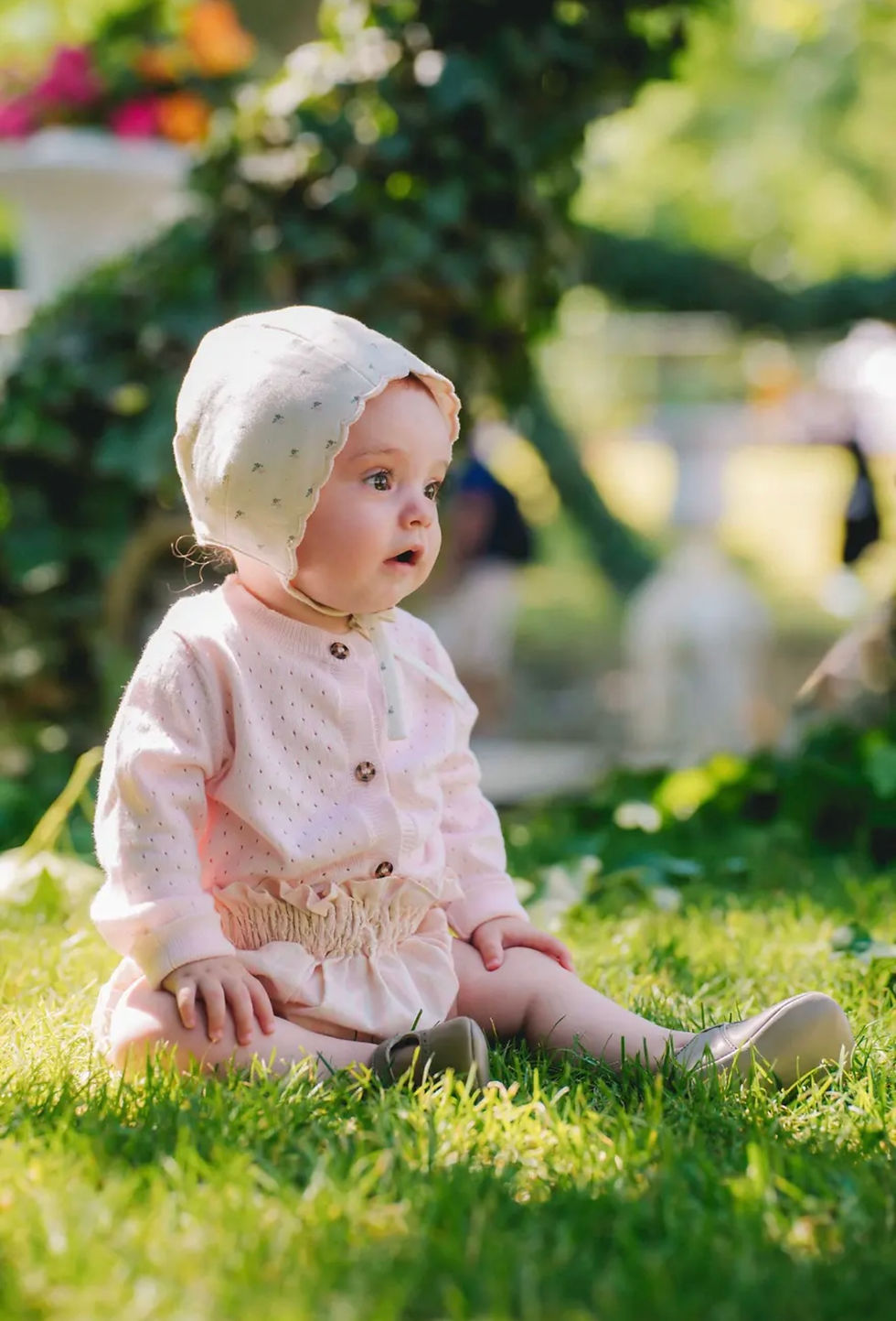 〈Loir Paris〉12-18m PRUNE - BEGUIN - Flower plumetis ボンネット bonnet